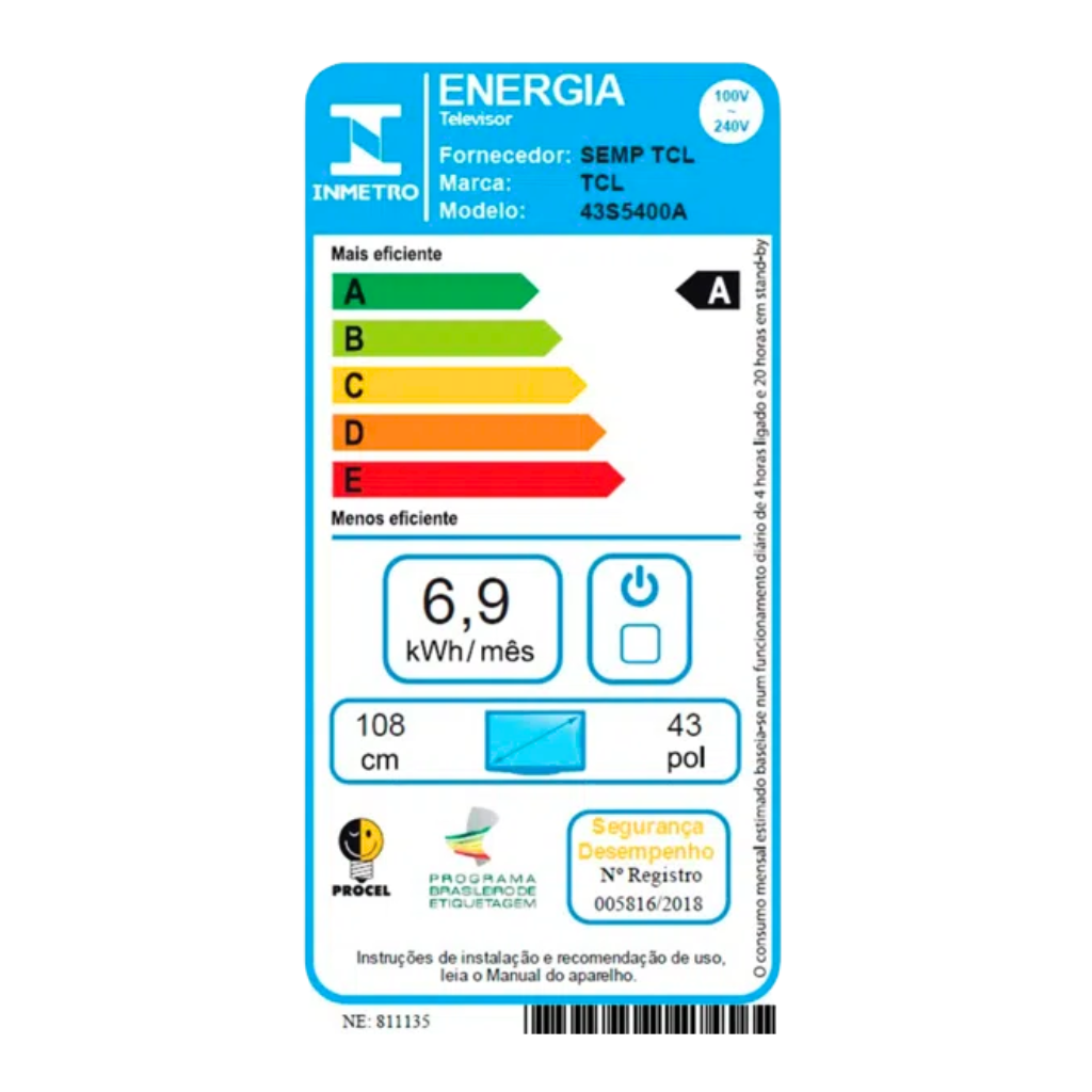 TV TCL 40S5400A. Com tela LED de 40 polegadas e resolução Full HD