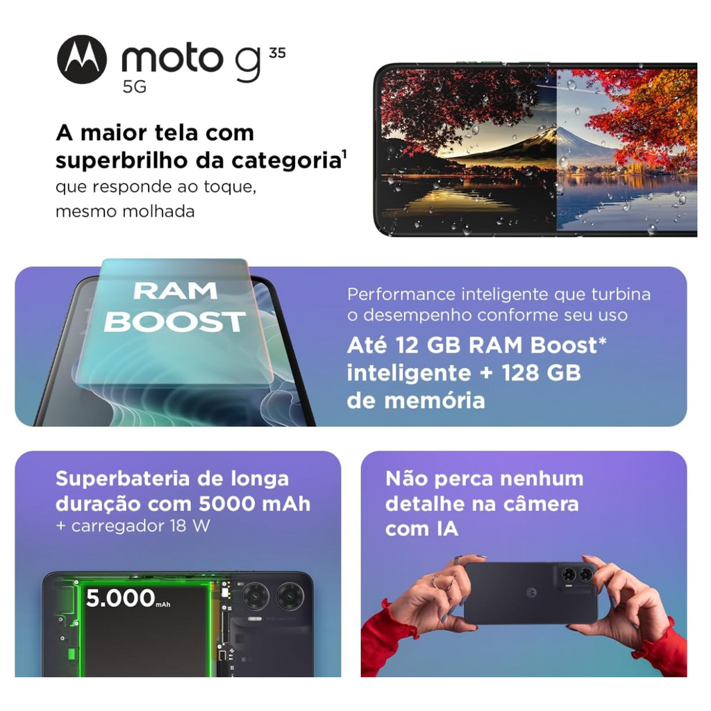 O Motorola Moto G06 256GB Verde é uma excelente escolha para quem procura amplo espaço interno, boa autonomia de bateria e desempenho confiável para as tarefas do dia a dia, entregando equilíbrio entre tecnologia, armazenamento e custo-benefício.