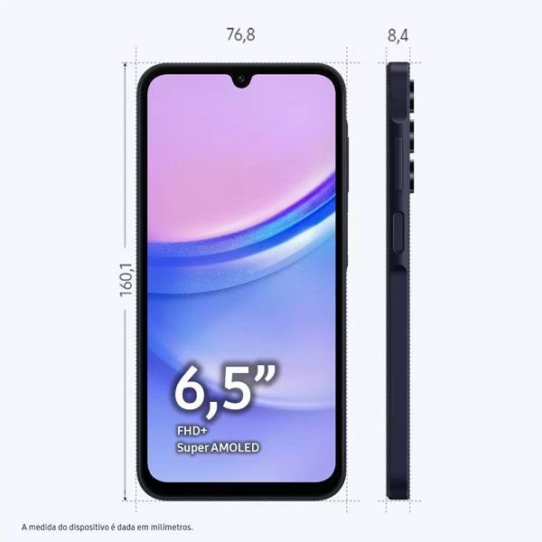 O Galaxy A15 possui um design elegante na cor Azul Escuro, com